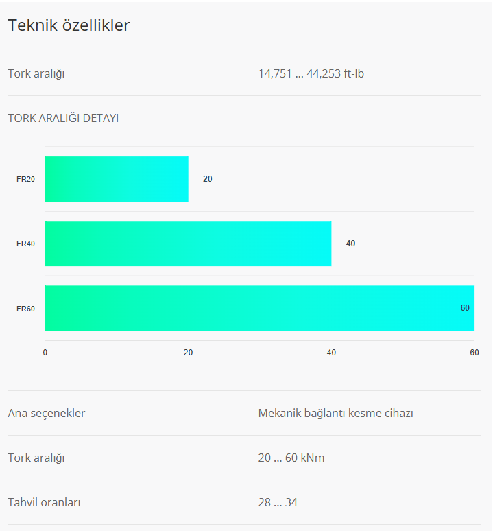 FR Serisi büyük tekerlekli arazi araçlarının tasarımında kullanılan en iyi çözümdür. Kompakt tasarım, yüksek tork ve yük kapasiteleri, negatif çoklu disk park freni ve acil durumda cihazı çekmek için isteğe bağlı serbest bırakma cihazı ile bu çözümler uygulama gerekliliklerini eksiksiz olarak karşılamaktadır.