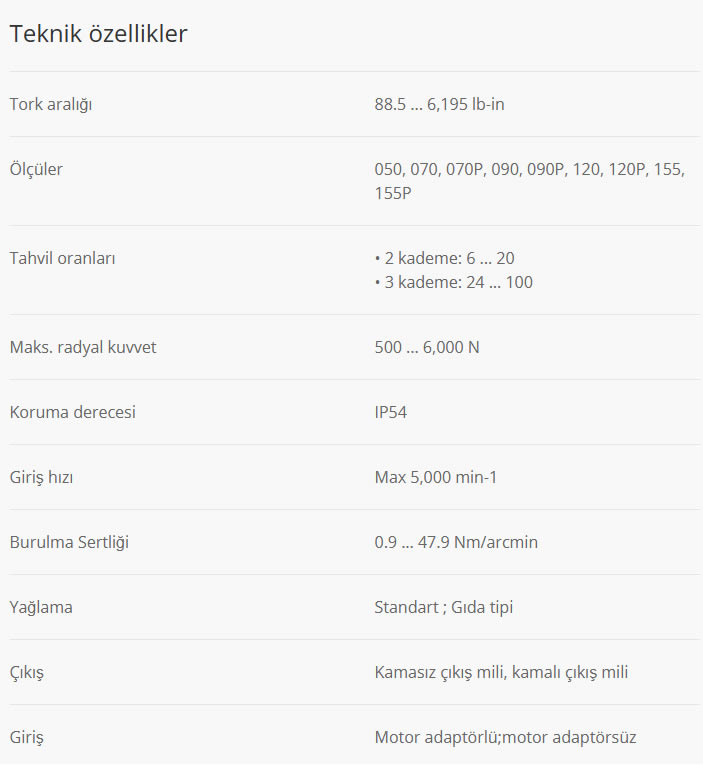 LCK düşük boşluklu planet redüktörler, kompak tasarıma sahip makinalar için esnek, güvenilir ve uygun fiyatlı çözümler sağlar. Pazar standartlarındaki çıkış tasarımı sayesinde geniş bir uygunluğu ve kolay değişim imkanını garanti ederek, yüksek seviyede proje geliştirme olanağı sağlar.